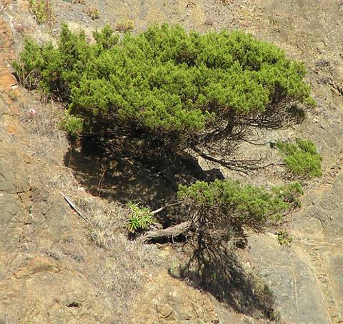 | 5.1. Guía de Isora cuenta con una de las últimas muestras de sabinas o 'sebinas' como se le conoce localmente, de la isla de Tenerife. Se pueden contemplar en los alrededores del barrio de Chío y de la Montaña Tejina. También es el hogar de una notable fauna. (Francisco Fariña) |