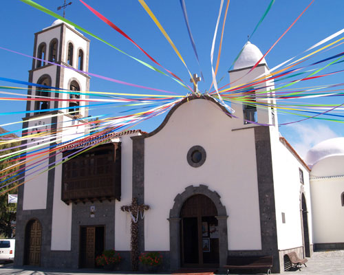 | 12.2. La cúpula de la Iglesia de Santiago del Teide (a la izquierda de la imagen) es una de las soluciones arquitectónicas más originales de Tenerife. (DL) |