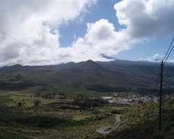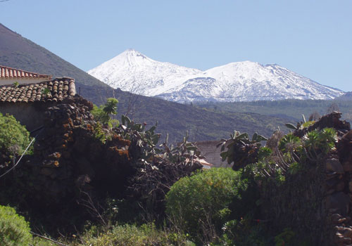 | 3.3. La estampa de la Dorsal de Bilma, y especialmente de Teide y Pico Viejo se puede observar desde casi cualquier punto de Santiago del Teide, especialmente en los días más claros, como aparece en la fotografía. (AST) |