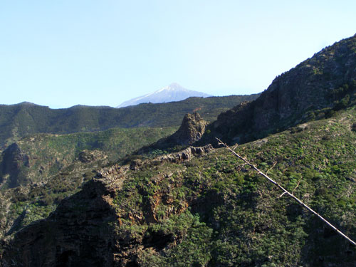 | 11.1. La montaña de Los Silos es un lugar idóneo para la práctica del salto del pastor. No son pocos los canarios que han desempeñado dicha afición en los escarpes como el de la imagen. (MP) |