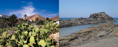 | 2.1. La chumbera o tunera común (Opuntia maxima) está muy extendida por la localidad y recuerda una de las etapas del desarrollo agrícola de Canarias relacionada con la exportación de la cochinilla. Su fruto, el tuno, es comestible, incluso en épocas de hambruna y su hoja se llegaba a comer asada. (PTF) La costa es una fuente de recursos para la población local. (SG) |