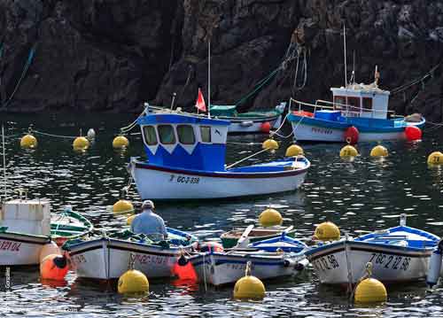 | 2.4. La presencia de botes de pesca en el muelle de El Cotillo ilustra en buena medida la devoción a esta actividad en este punto del municipio. (www.fuerteventuraenimagenes.com) |