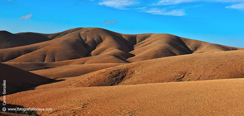 | 1.5. La zona occidental de la localidad alberga los restos del complejo basal, formación volcánica compuesta por lavas y piroclastos submarinos que hoy se nos presenta de forma suave y ondulada. (www.fuerteventuraenimagenes.com)