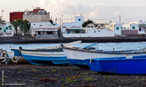 | 2.4. Un pequeño grupo de pequeñas embarcaciones situadas en el núcleo pesquero de Puerto Lajas. El mar fue uno de los principales recursos para la población local y el pueblo majo. (www.fuerteventuraenimagenes.com) |