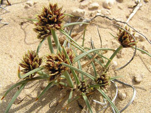 Así pues, en los lugares donde se extienden las arenas (especialmente desde los 25 metros de altitud hasta el nivel del mar) aparecen comunidades de plantas adaptadas a crecer en estos medios, esto es; especies psámofilas. Entre ellas se distinguen tres tipos. En la punta de Jandía y en la Punta de Barlovento dominan las comunidades de Uvillas de mar (Zygophyllum gaetulum) y de Matilda parda (Frankenia capitata). En el cordón de arenas del área de Cofete aparecen matorrales con especies de Lengua de Pájaro (Polycarpaea nivea), de Corazoncillos (Lotus lancerottensis) y de Juncos marinos (Cyperus capitatus). Por otra parte, en la costa oriental se identifican saladares en donde crecen Matos (Arthrocentum macrostachysum) y Uvas de mar (Zygophyllum fontanesii).