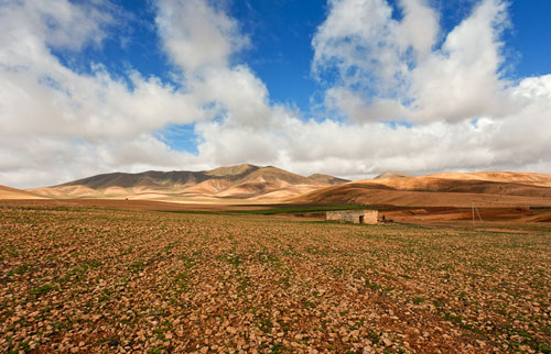 | 2.10. La ausencia de precipitaciones en la mayor parte del año, da lugar a paisajes áridos como el que se presenta en la imagen. (www.imagenesdefuerteventura.com) |