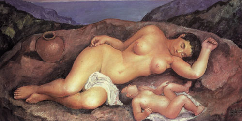| Maternidad. Aguiar, 1946. El hombre canario, tradicionalmente, ha quedado en un segundo plano en la educación de los hijos. |