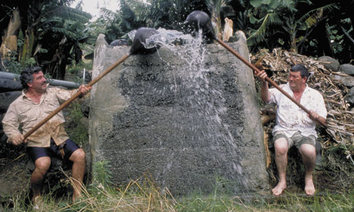 El paso de actividad de riego a juego se produce en los «piques» y apuestas para ver quien es que puede hacer mayor número de repeticiones en un tiempo determinado, o ver quién es el que llena antes un recipiente.
