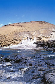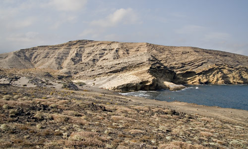 Este Monumento Natural, es un edificio volcánico que forma parte de una cadena de conos situados en el sur de la Isla. Se formó por actividad freatomagmática, con erupciones muy explosivas al entrar en contacto el magma con aguas superficiales. Su proximidad al mar ha provocado que parte de su estructura se haya destruido por erosión, dejando al descubierto llamativos estratos de piroclastos y una interesante duna fósil en su base. El cono está constituido por traquibasaltos de la Serie III, aunque en su sector oriental, hay materiales basálticos del mismo periodo procedentes de otros volcanes cercanos. |