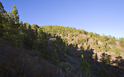 Entre la vegetación destaca el pinar canario (Pinus canariensis), que se asienta sobre los materiales sálicos. También hay presencia de jaras (Cistus symphytifolius y Cistus monspeliensis), espárragos (Asparagus plocamoides), bejeques (Aeonium spathulatum) y cerrajas (Sonchus acaulis).
