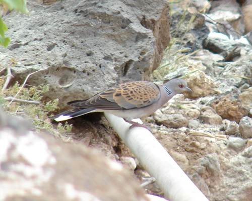 La tórtola común (Streptopelia turtur turtur) también está en muchas zonas de Tenerife, reconocible por su color predominante arena-rojizo y por su decadente arrullo. Con mayor asiduidad se puede observar a su pariente la tórtola turca (Streptopelia decaocto), especie introducida y distribuida por todo el Mundo. Es de color claro con una especie de collar más oscuro, pudiéndose ver mucho en parques y ciudades.