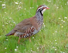 La perdiz roja (Alectoris rufa), a pesar de que se da tambi�n en la pen�nsula Ib�rica y algunas zonas de Europa, es digna de menci�n en este apartado. Es debido a que dentro del Archipi�lago, s�lo est� presente en Gran Canaria, criando �nicamente en el oeste insular. Se reproduce en tierras bajas secas, como zonas agr�colas y �reas abiertas pedregosas, poniendo sus huevos en un nido en el suelo. Cuando se siente amenazada prefiere correr a volar, pero si es necesario lo hace en vuelos a poca distancia. Suele alimentarse de semillas, aunque tambi�n de alg�n que otro insecto.