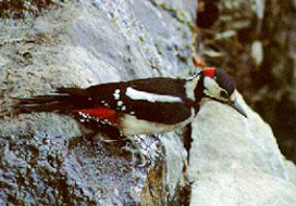 El p�jaro carpintero, picapinos o maderero, tiene dos especies en Canarias, una para Tenerife (Dendrocopos major canariensis) y otra para Gran Canaria (Dendrocopos major thanneri). Su h�bitat es el pinar, aliment�ndose de larvas de insectos que viven en la madera y debajo de la corteza, aunque tambi�n come semillas. Tiene patas cortas y dedos adaptados para trepar, con un robusto pico que esconde una lengua en forma de arp�n que le ayuda a capturar a sus presas. Adem�s, su cola le sirve como punto adicional de apoyo mientras pica los �rboles en busca de comida.