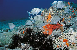 Entre otros aspectos, destaca la influencia de la corriente fr�a de Canarias que mantiene una temperatura m�s baja de la habitual para su latitud, y que �es responsable del continuo aporte de material gen�tico (larvas y todo tipo de organismos) que impiden la diversificaci�n y evoluci�n en un medio tan uniforme�.
