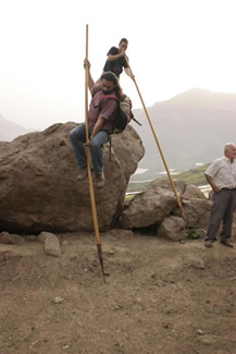 En Gran Canaria son famosas algunas de las m�s c�lebres piedras de agarre, como la Piedra del Gallo o la de la Aldea blanca (en San Bartolom� de Tirajana).