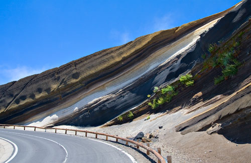 | La Conocida como ‘Tarta’ en Las Cañadas del Teide. Muestra la superposición de coladas de diferentes materiales. (DM) |